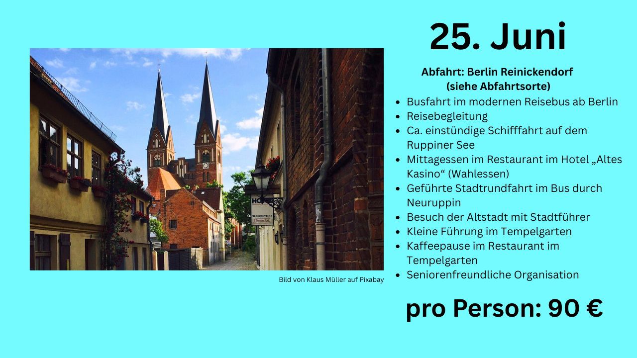 Komfortabel, begleitet und voller Erlebnisse. Entdecken Sie Natur, Kultur und Events in Berlin und Brandenburg oder planen Sie Ihre eigene Gruppenfahrt mit individuellem Programm und persönlicher Beratung.